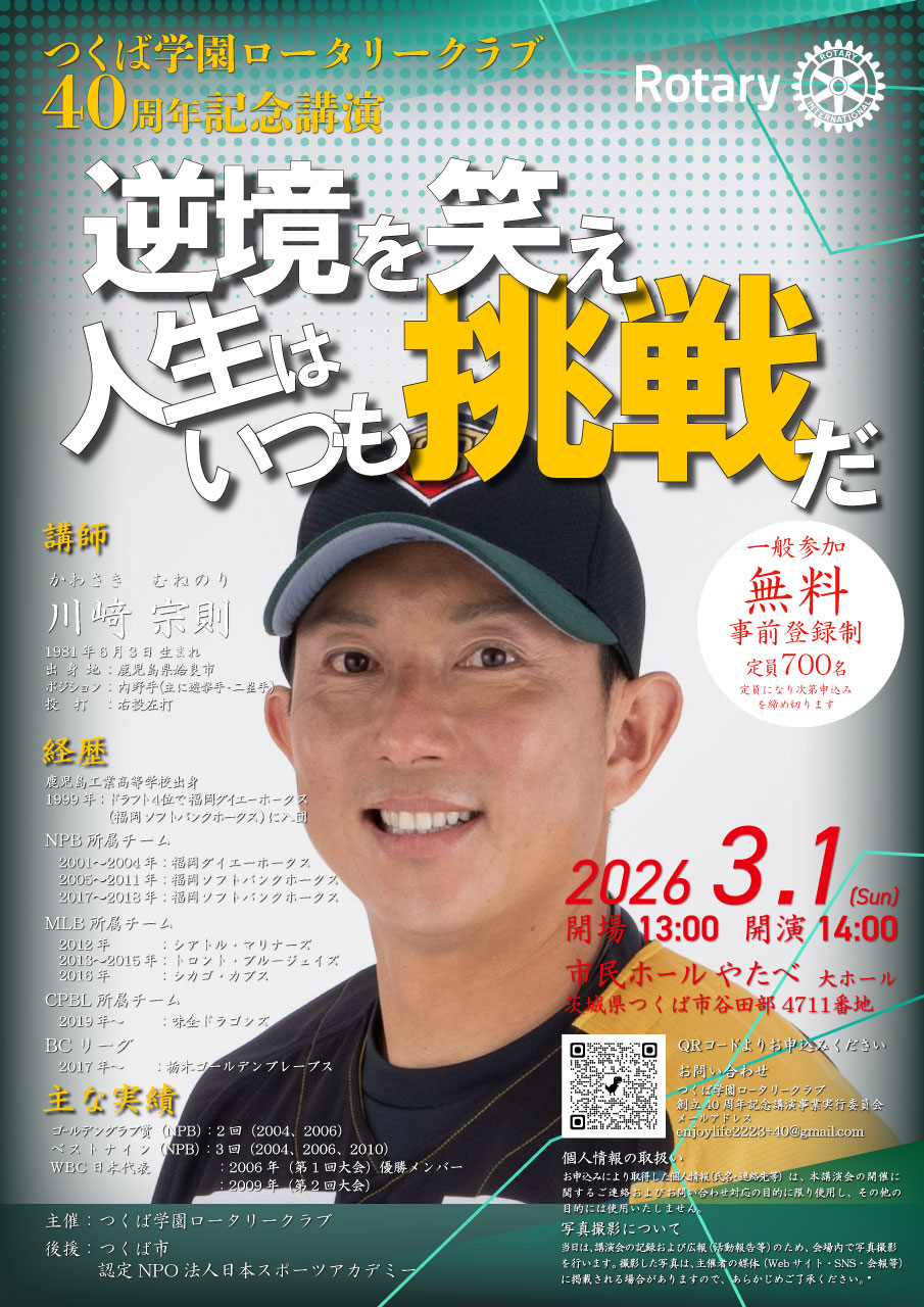 この度、つくば学園ロータリークラブ様より「40周年記念講演」の案内をいただきました。