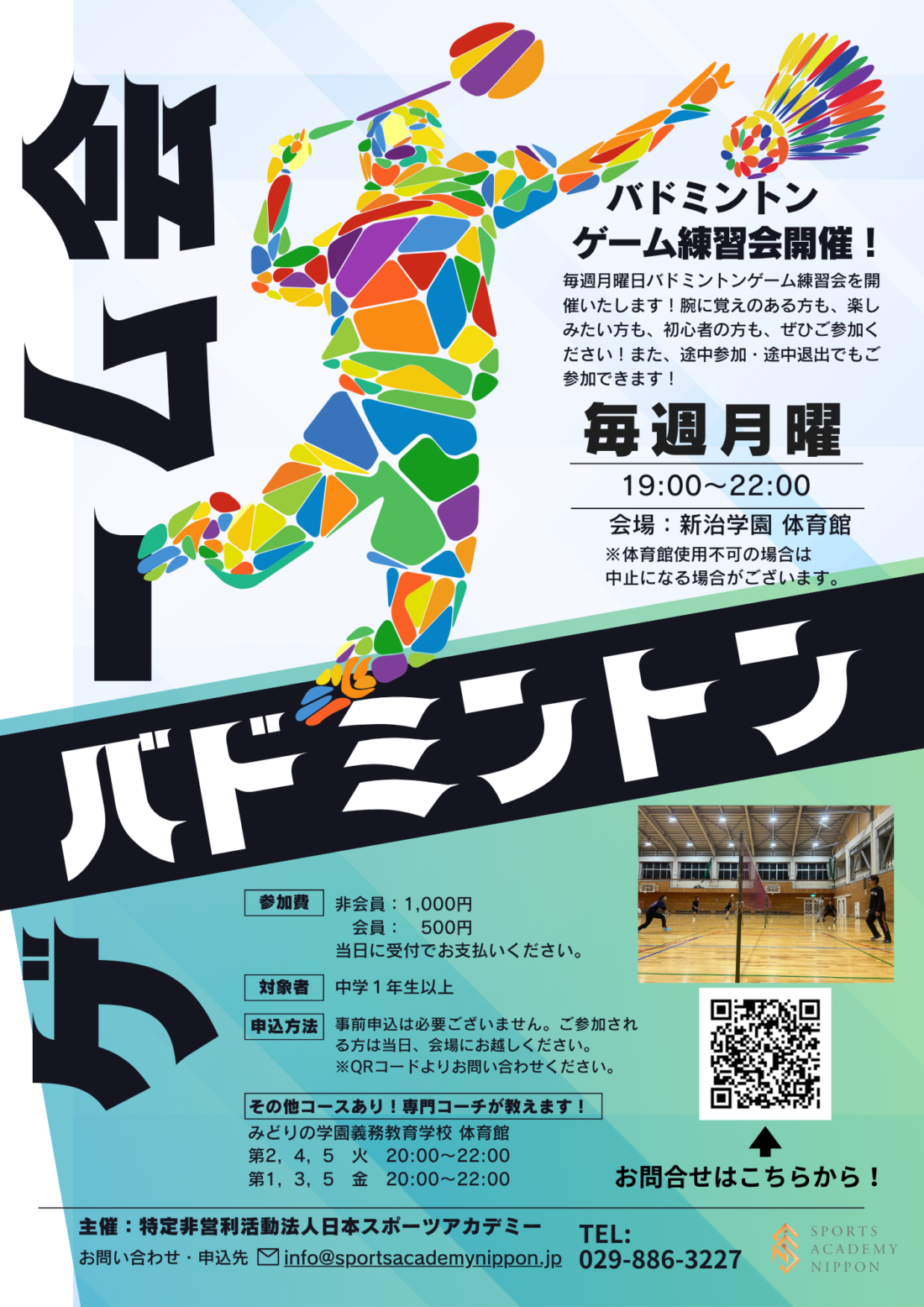 ※体育館が使用できない場合は中止にさせていただきます。